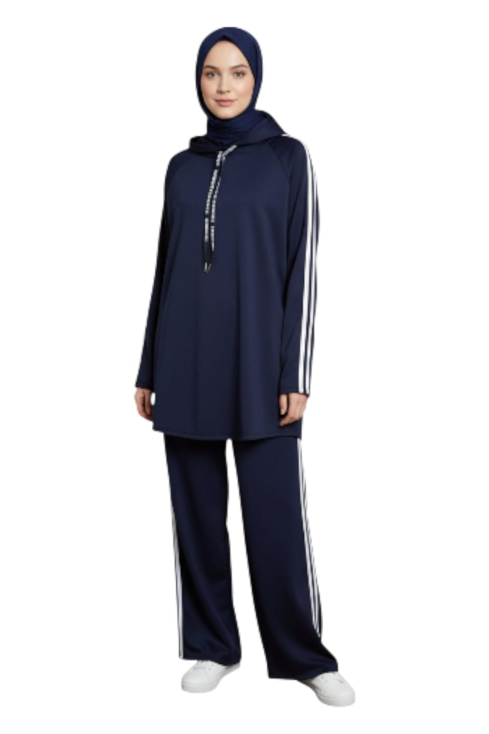 Détails : Bandes blanches contrastantes sur les manches et les jambes