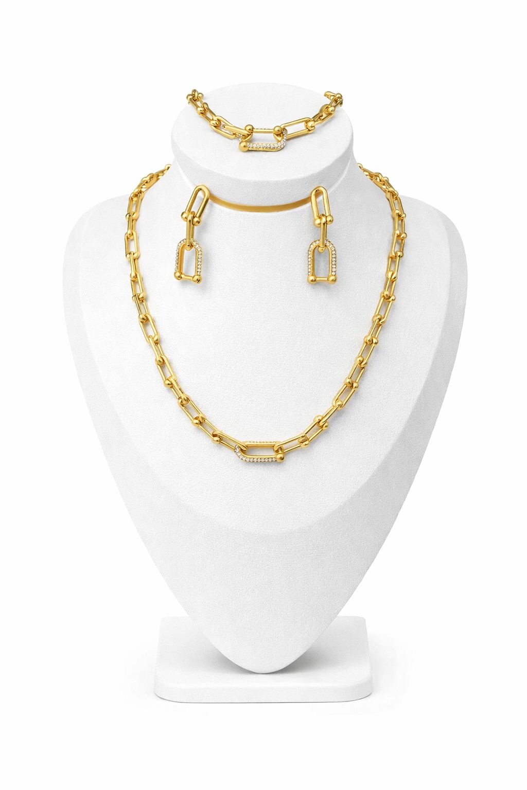 Parure Tiffany avec strass doré en acier inoxydable
