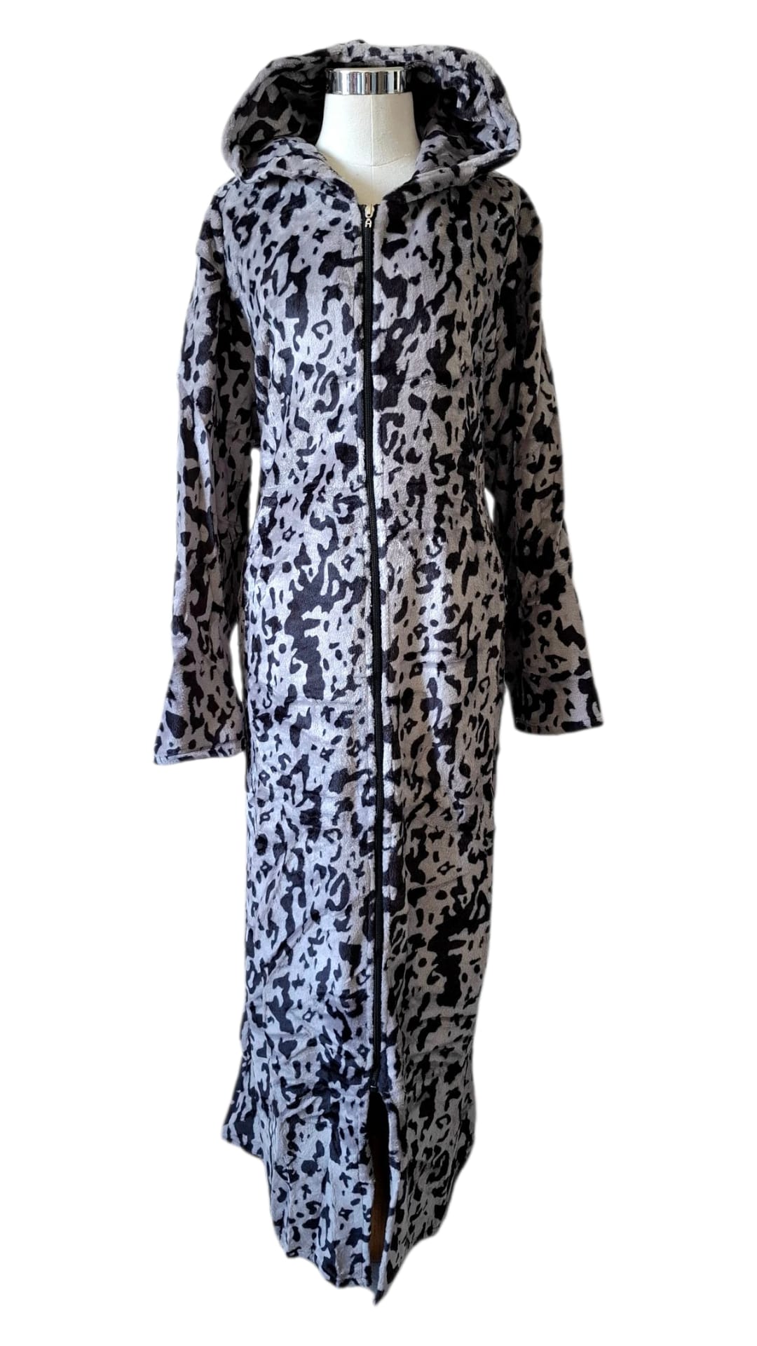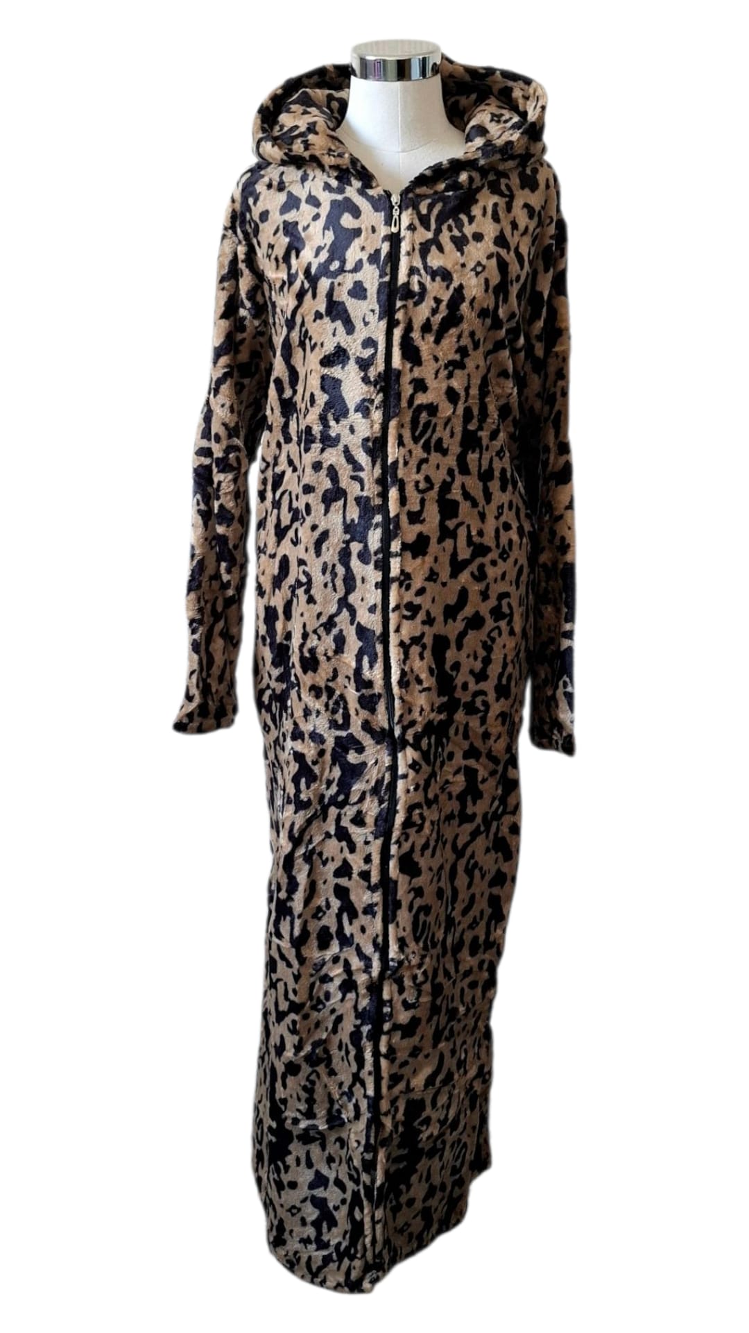 Robe longue à capuche zippée – Motif animalier abstrait